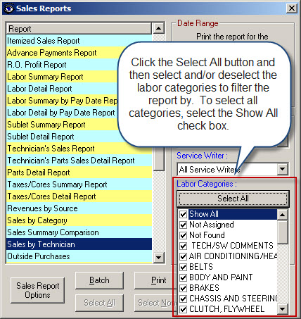 When you select one of these reports, click the Select All button under Labor Categories to see the available labor categories.