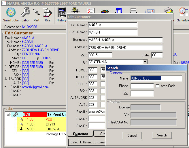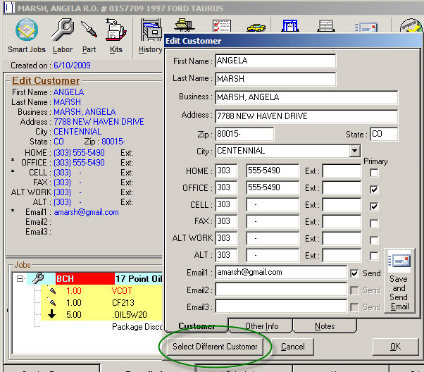 If the wrong customer and/or vehicle was selected when the estimate or repair order was created, you can select a different customer and/or vehicle.