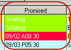 Check the Waiting box if the customer is waiting in the shop. The Promised column is highlighted green and says "Waiting".