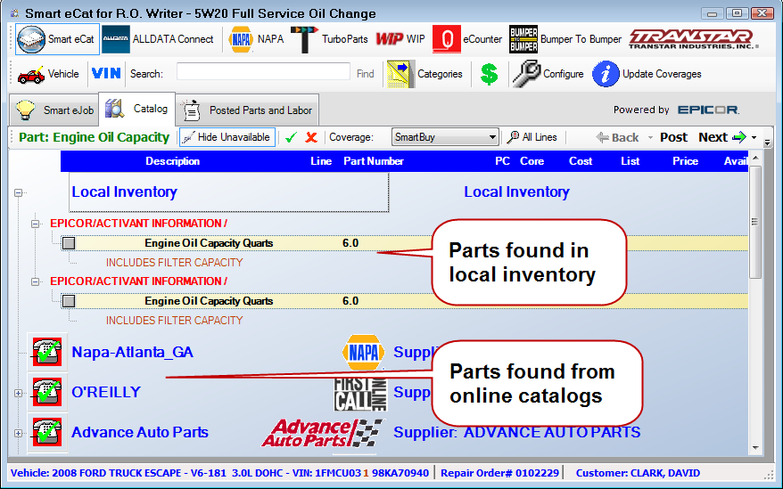 - Smart eCat closes and the posted parts and labor appear on the open ticket.