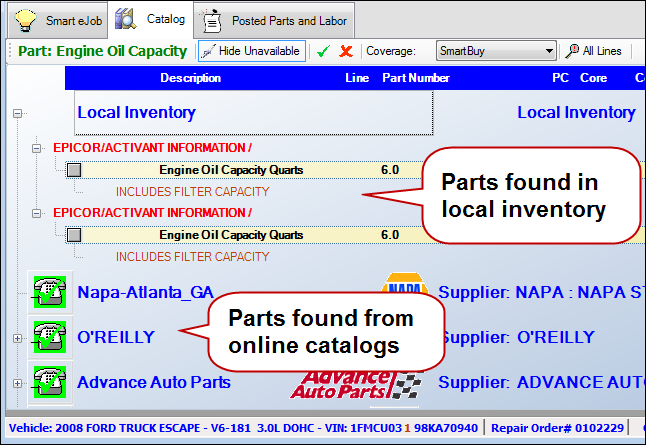 - Search all your online catalogs and your local inventory at the same time (see Smart eCat Catalogs)