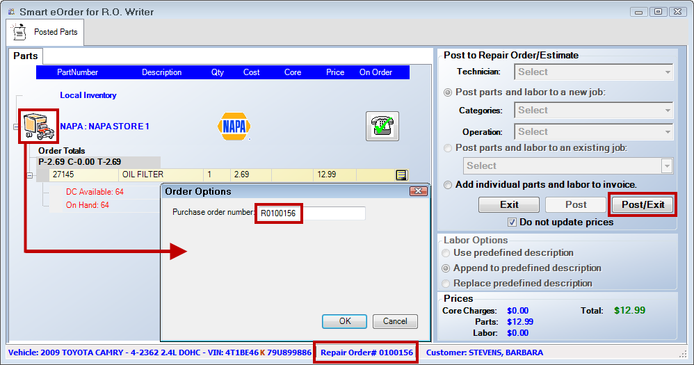 - When you access Smart eOrder from an open ticket, it contains the parts posted to that repair order.