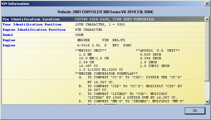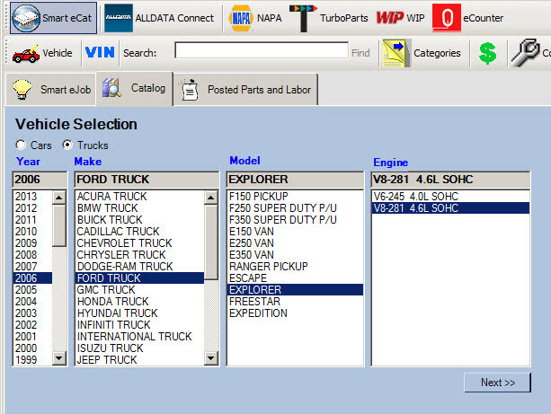 - To select the vehicle information for the search, click Next or double-click on the engine.