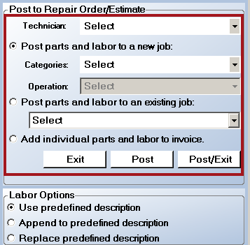 Click to add the selected items and move to the Posted Parts and Labor tab.