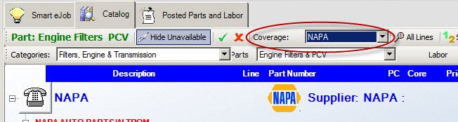 If you wish to select one specific coverage (other than the Smart Buy coverage which includes multiple suppliers), select it in the Coverage dropdown list. The search results are narrowed to show only the lines included in that coverage list.