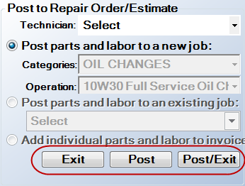 The Post to Repair Order/Estimate section appears on the right side of the window.