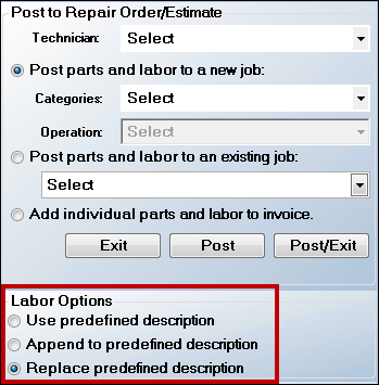 Replace the description of the R.O. Writer labor operation with the Epicor description. (The description will be blank so that you can write a description in.)