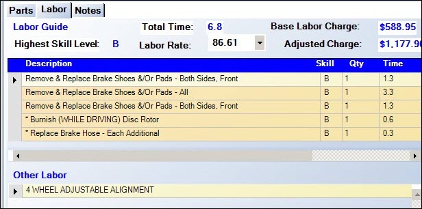 Other Labor is additional R.O. Writer labor operations added to the smart job. It is posted to the repair order as a separate labor job. If the smart job has a package price, other labor jobs are not included in that price.