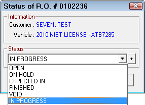 Change the repair order to this status if you want to void it. Voided repair orders are removed from the WIP window and moved to History automatically. Voiding a repair order removes all parts and labor detail to make sure your reporting is accurate but keeps the total dollar amounts. The repair order number cannot be assigned to a new repair order but is shown as voided in History. |