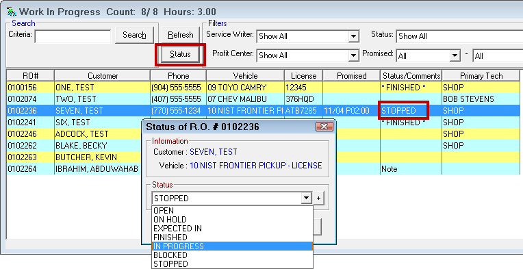 NOTE: Up to 10 custom statuses can be added for repair orders in the Status setting in Configuration.