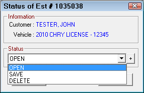 Estimates in an Open status appear on the Estimates in Progress window until you convert it to a repair order or change the status.
