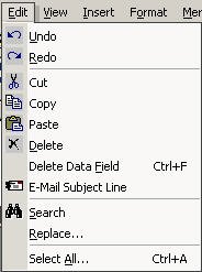 The Cut tool works like scissors on paper. The selected item is removed, but placed on the clipboard. To relocate the cut item to another part of the document, reposition the insertion point at the desired location and click the Paste tool. The Copy tool functions in much the same way as Cut, except it copies the selection instead of removing it. When Delete is used, the item is gone. For data fields, use Edit, Delete Data Field.
