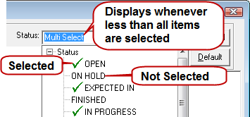 Status | Select the Status. Show All is selected by default. To select a specific status, de-select Status at the top of the list and then select the status you want to see. |