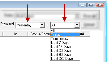 Date and time the customer was promised repairs would be completed by: If the date and time is in red, a promised time has been set. "Waiting" appears highlighted in green if the box was checked. |