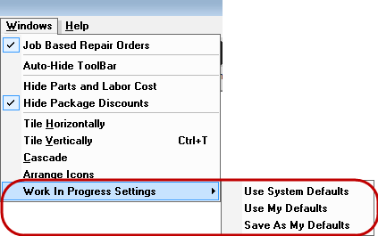 NOTE: The settings on this menu apply to both the Work in Progress (WIP) Window and Estimates in Progress Window at the same time.