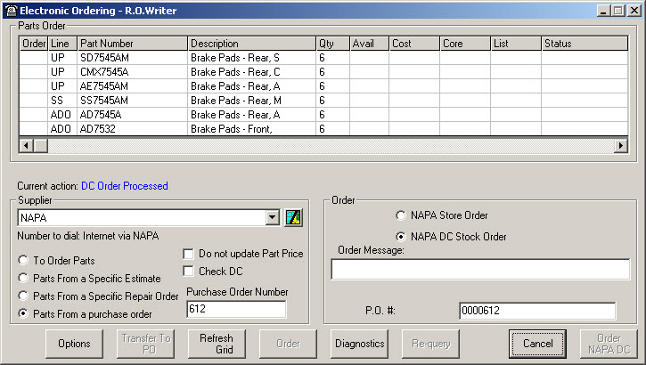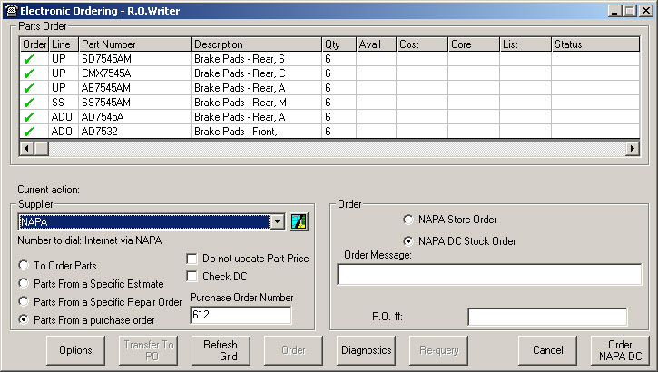 You can query and order from NAPA in eOrder by selecting it as the Supplier on the Electronic Ordering window.