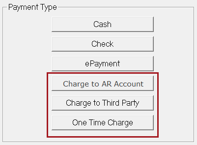 Click to charge to another customer’s account in Accounts Receivable. This button always appears. |